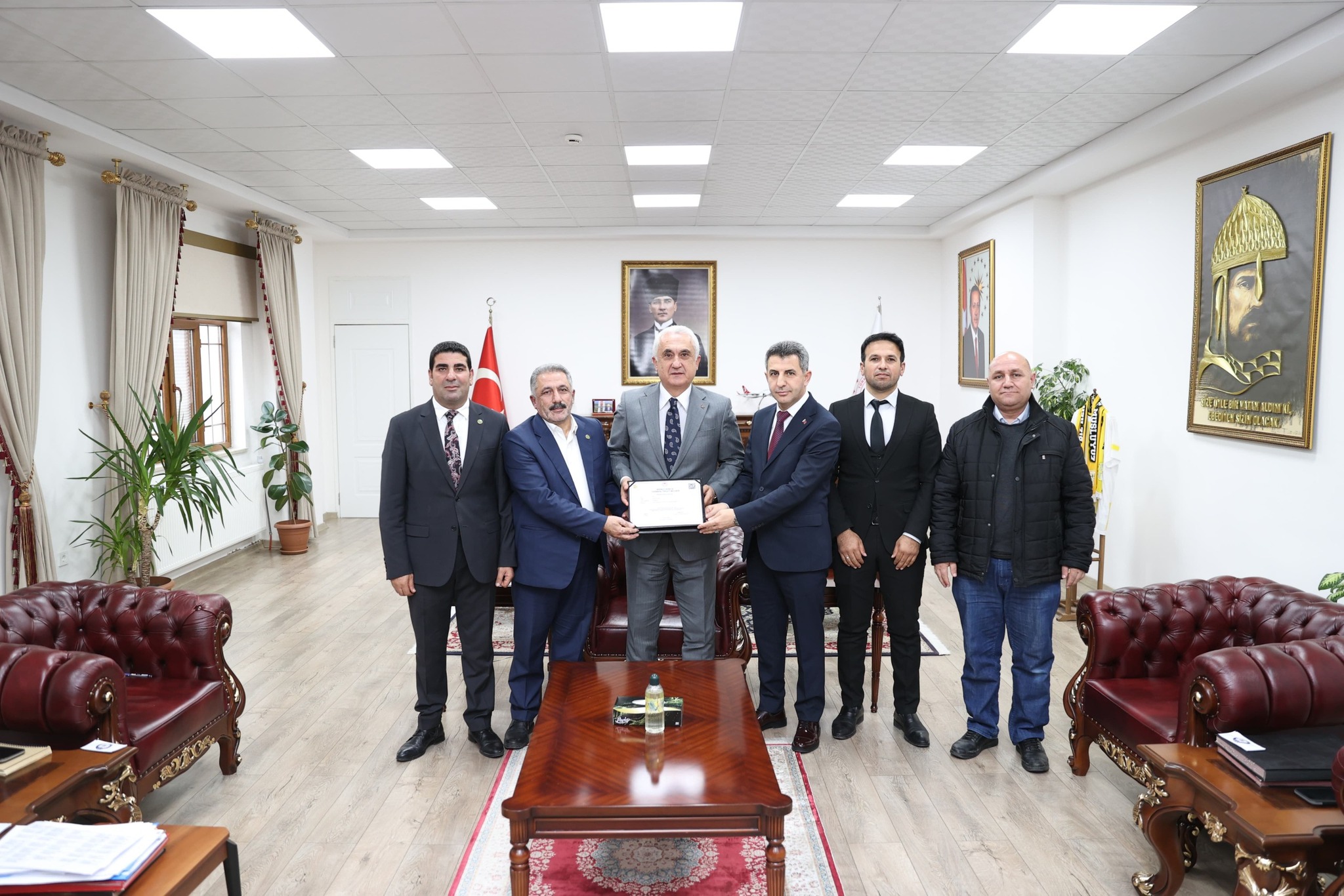 Söz konusu belge, Vali Avni Çakır tarafından Muş İli Damızlık Koyun Keçi Yetiştiricileri Birliği adına Birlik Yönetim Kurulu Başkanı Sami Konuk'a takdim edildi. Programa İl Tarım ve Orman Müdürü Necattin Gönç, Hayvan Sağlığı, Yetiştiriciliği ve Su Ürünleri Şube Müdürü Yasin Aydın, Birlik Başkan Yardımcısı Nimet Salkım ve Muş İli Damızlık Koyun Keçi Yetiştiricileri Birliği Sorumlu Müdürü Evliya Karaman eşlik ettiler.