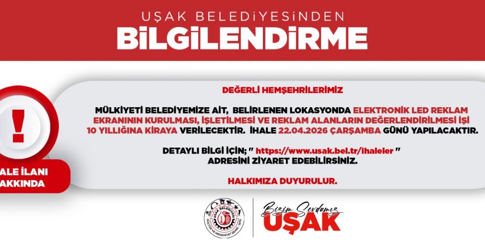 LED Reklam Ekranı İhalesi Yılında Yapılacak LED Reklam Ekranı İhalesi Yılında Yapılacak18:39 14-04-2026 -