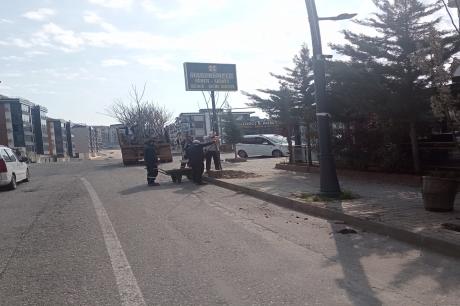 10 kişilik ekip tarafından yürütülen çalışmalarda, ilk olarak kaldırımlarda kazı işlemleri gerçekleştirildi.